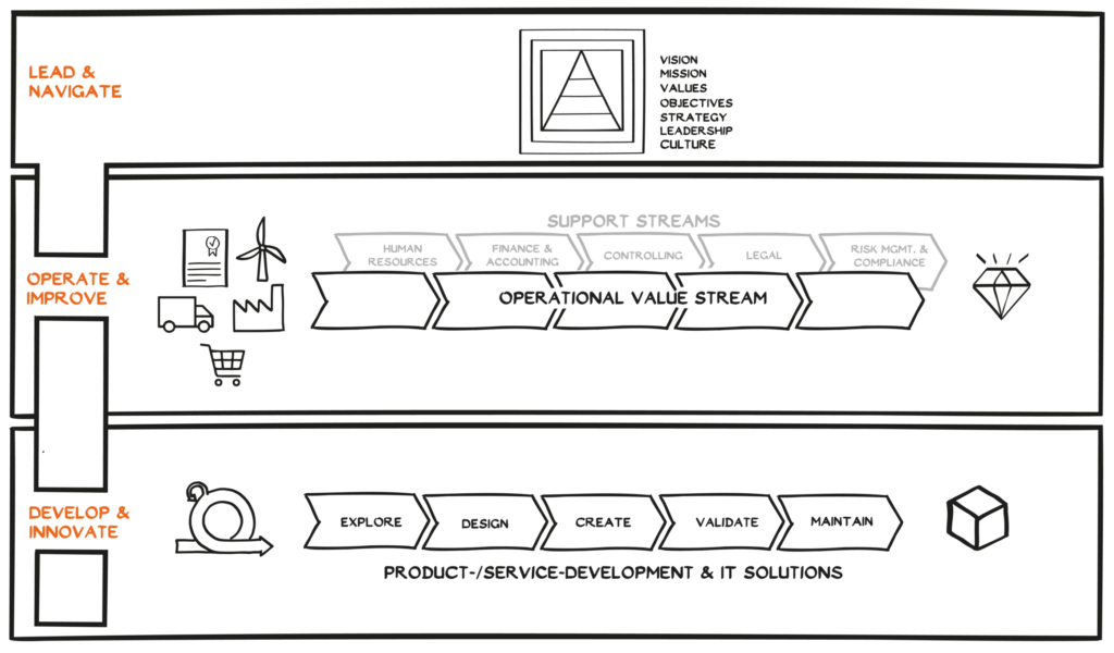 Lead & Navigate ensures that the corporate purpose, strategy, operating model, management and incentive systems, leadership and communication are consistent and consistent.